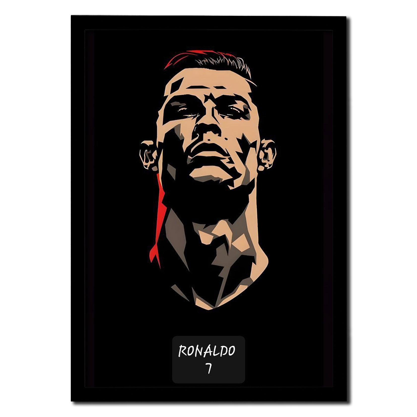 Bold and striking vector artwork of Cristiano Ronaldo, showcasing his iconic look with a dramatic color palette. Perfect for fans and collectors, this poster features "RONALDO 7" at the bottom, celebrating the legendary footballer's legacy.