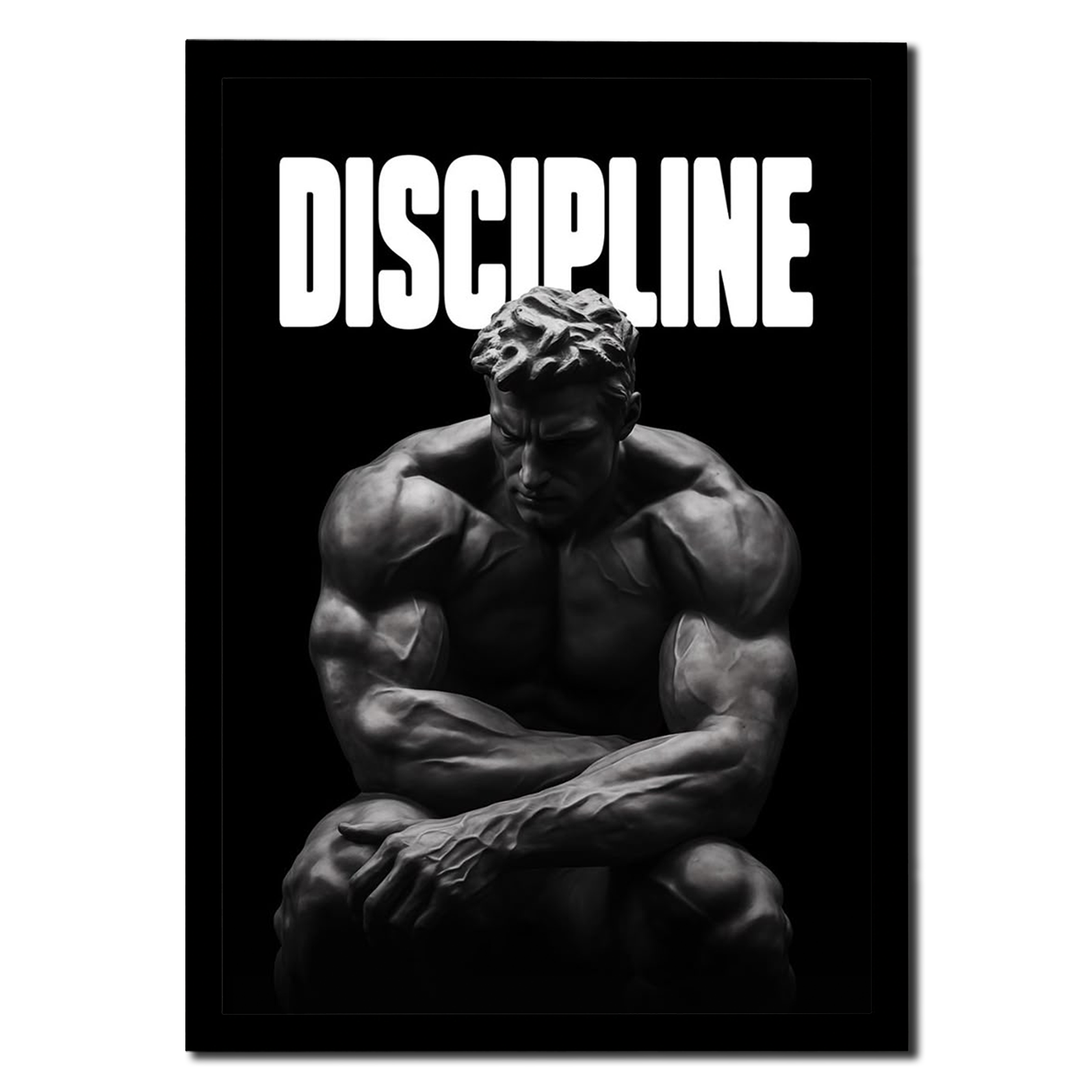 A bold visual of strength and control, this powerful artwork features a focused figure beneath the word DISCIPLINE. Perfect for inspiring grit in gyms, offices, or personal spaces.