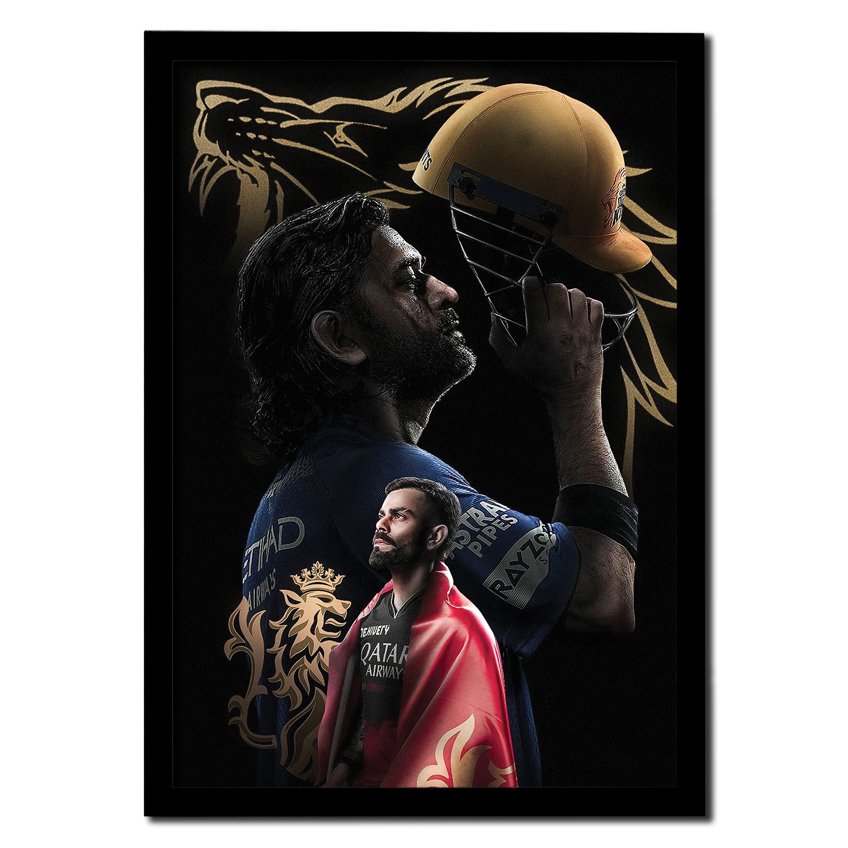 Celebrate the spirit of IPL legends with this striking artwork featuring MS Dhoni and Virat Kohli — two titans of Indian cricket. With symbolic lion imagery and team pride, this design captures the passion, legacy, and rivalry of Chennai Super Kings and Royal Challengers Bangalore. A must-have visual tribute for every true cricket fan.