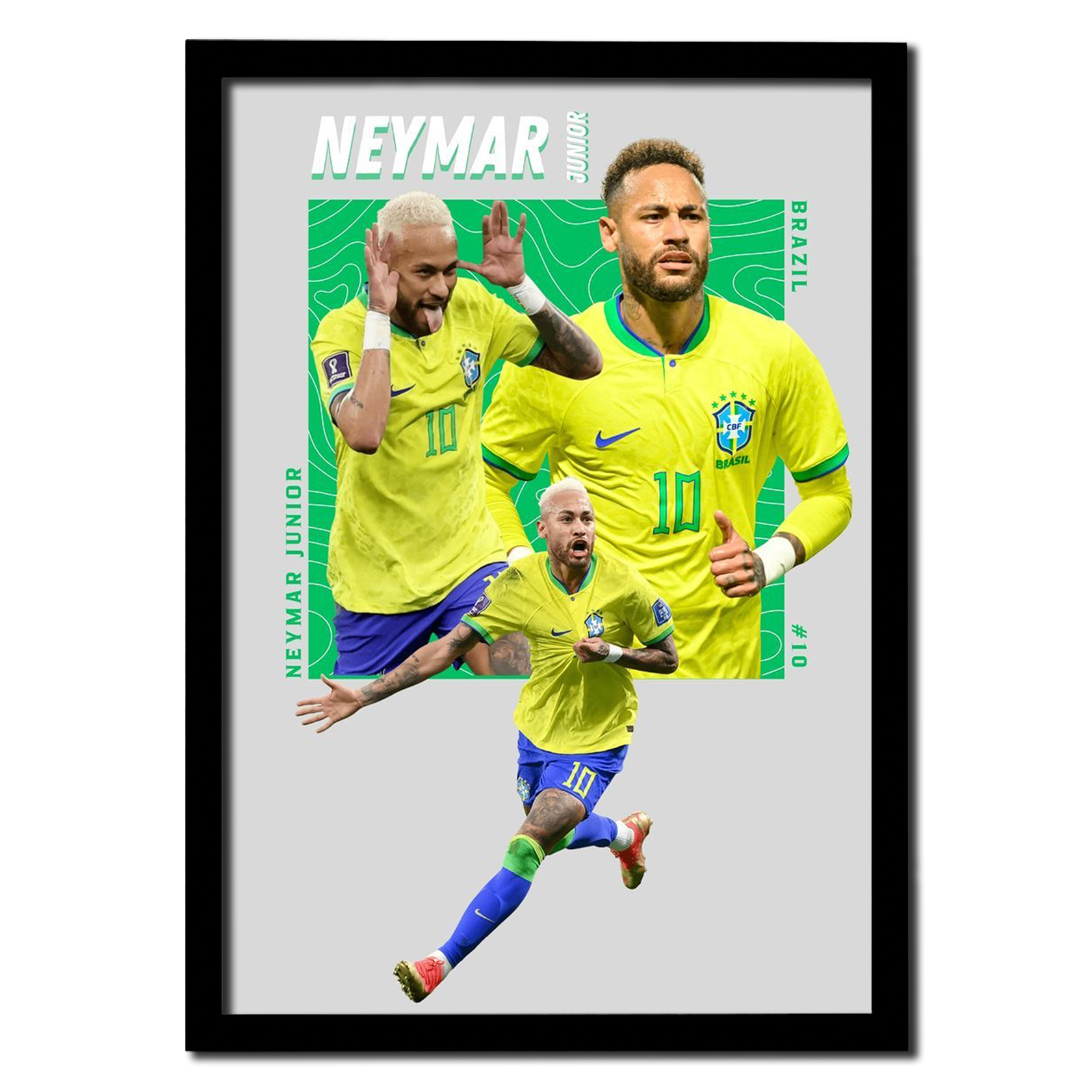 Celebrate Neymar Jr.'s brilliance with this vibrant Brazil-themed poster, perfect for every football fan.