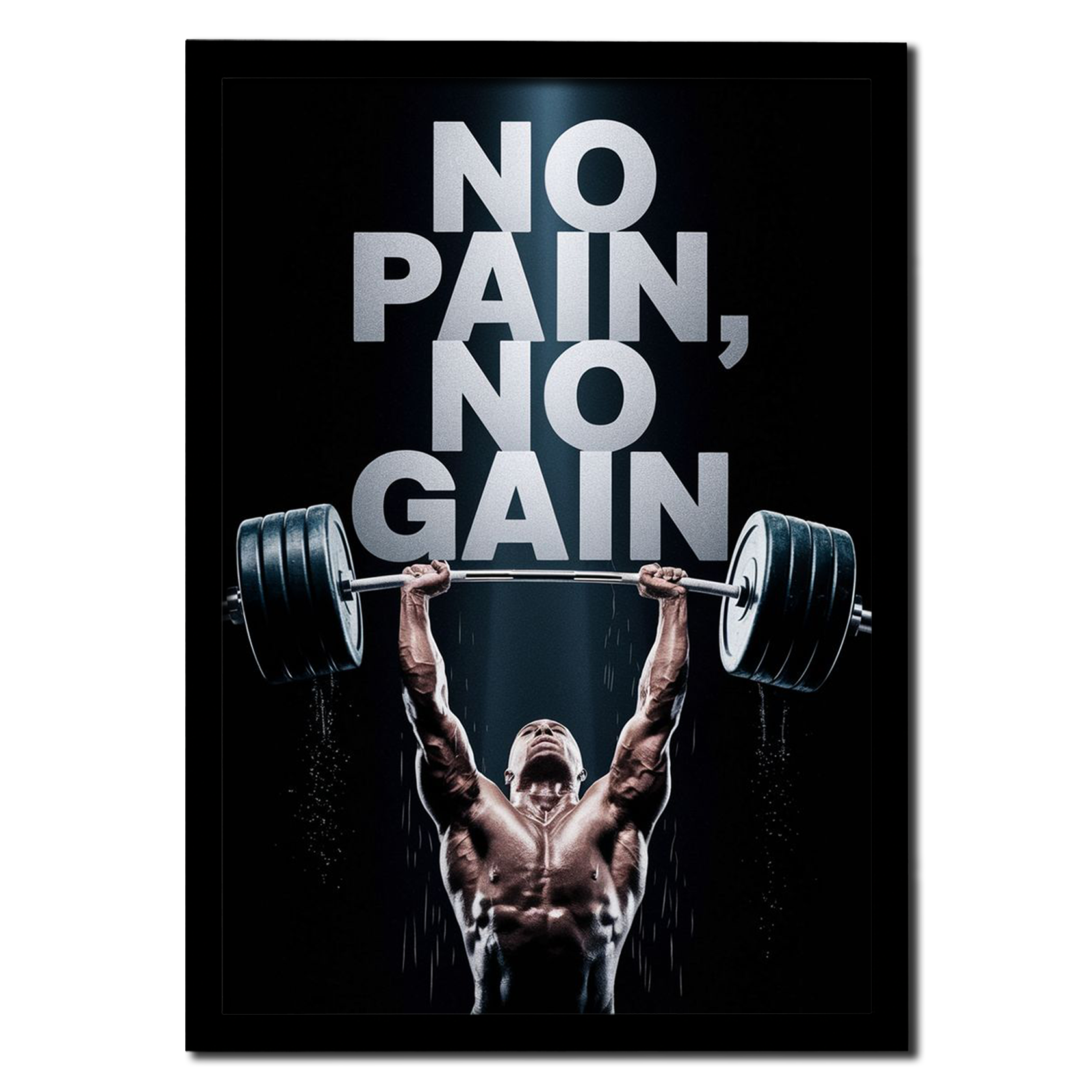 Push your limits with this intense fitness poster featuring the classic mantra: "No Pain, No Gain." Ideal for gyms and workout zones.